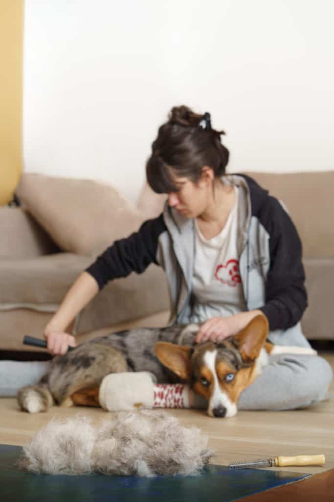 While you can’t stop your Corgi from shedding, there are things you can do to help reduce the amount of hair that gets left around your house. First, make sure you are brushing your Corgi regularly.