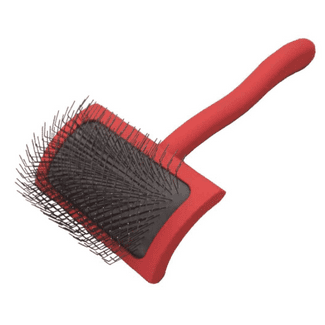 The Chris Christensen Big G Dog Slicker Brush is the perfect tool for easy fluffing, detangling, and styling of your dog’s coat. The professional grooming brush comes in a coral color that adds a pop of personality to your grooming routine. The bristles on the brush grasp hair easier to remove tangles and excess hair. The Chris Christensen Big G Dog Slicker Brush also reduces shedding.