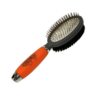 The Professional Double-Sided Pin & Bristle Brush is one of the only pet brushes on the market that is designed for both comfort and quality. The pins on the brush are soft and flexible, with rounded tips to prevent scratching, and ventilation holes to keep them from getting too stiff. The bristles are also designed to be gentle on your pet’s coat. The gel-filled handle is comfortable for both you and your pet, making grooming a much more pleasant experience.