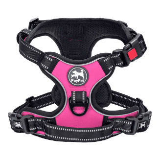This harness is made of scratch-resistant oxford material and features a lightweight Duraflex buckle with a large loading capacity for added strength. The ergonomic design is easy to use and adjustable for a custom fit, and the reflective material keeps your dog visible at night. Plus, the included matching leash and collar complete the look. Whether you’re hiking, running, or just out for a walk, Chai’s Choice Premium Outdoor Adventure Front-Clip Dog Harness has got you covered!